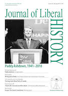 In this issue: Paddy Ashdown – An Appreciation (Michael Meadowcroft); Writing about Paddy (Neil Stockley); The long-lived Liberal Party of Canada (Tom Axworthy and Lorna Marsden); ‘Vote for Mr Crum and one other Liberal’ (David Hanson MP); Europe – The Liberal Commitment, with Anthony Howe and Eugenio Biagini (meeting report by Neil Stockley); review of Kroeze, Vitoria and Geltner (eds.), Anti-corruption in History: From Antiquity to the Modern Era (Tom Crook); review of Wilkinson, Lloyd George: Statesman or Scoundrel (Alan Mumford); review of Pugh, State and Society: A Social and Political History of Britain Since 1870 (Eugenio Biagini); review of Gottlieb and Toye (eds.), The Aftermath of Suffrage: Women, Gender and Politics in Britain, 1918–1945 (Ian Cawood).
